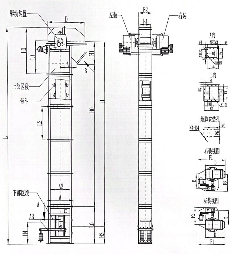 D型斗式提升機(jī)外形結(jié)構(gòu)圖