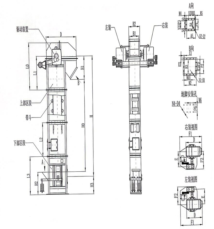 TD型斗式提升機(jī)外形結(jié)構(gòu)圖